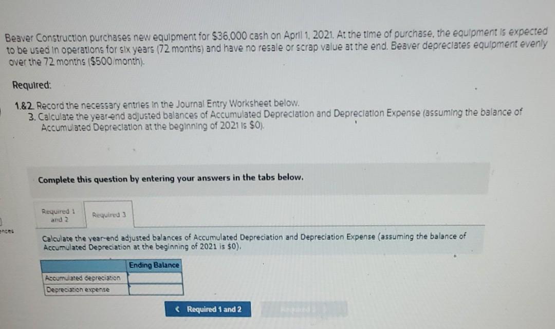 Solved Beaver Construction Purchases New Equipment For Chegg Com